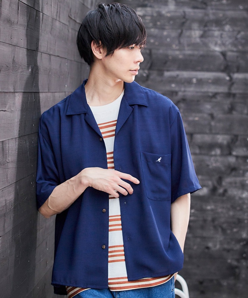 カンゴールのリラックスオープンカラーシャツは、オーバーサイズなので、トレンドを押さえたアイテムとしてもおすすめ。リラックス感のあるシルエットで、ワイドパンツとの相性が良い青シャツです。夏の青シャツコーデにぴったりな一着となっています。