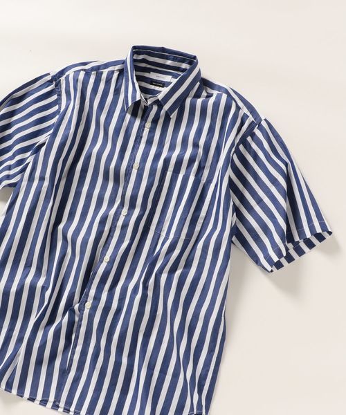 日本縫製の高品質な一着。濃いブルーでデザインされたストライプ柄の青シャツは、白のパンツと相性抜群です。爽やかな大人の夏コーデにおすすめ。ややゆったりとした作りなので、トレンド感のあるオーバーサイズとしてコーデできる青シャツです、