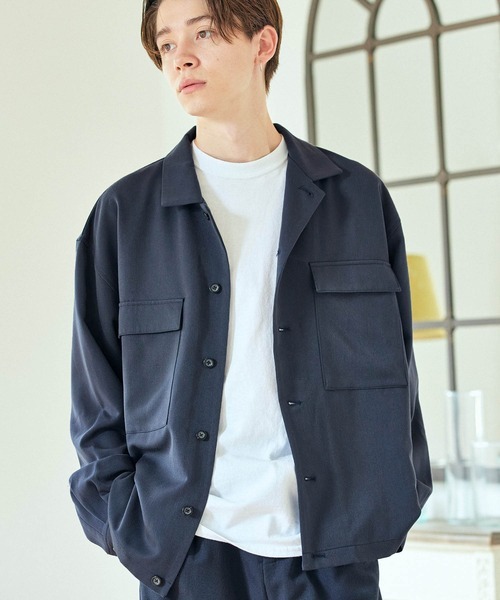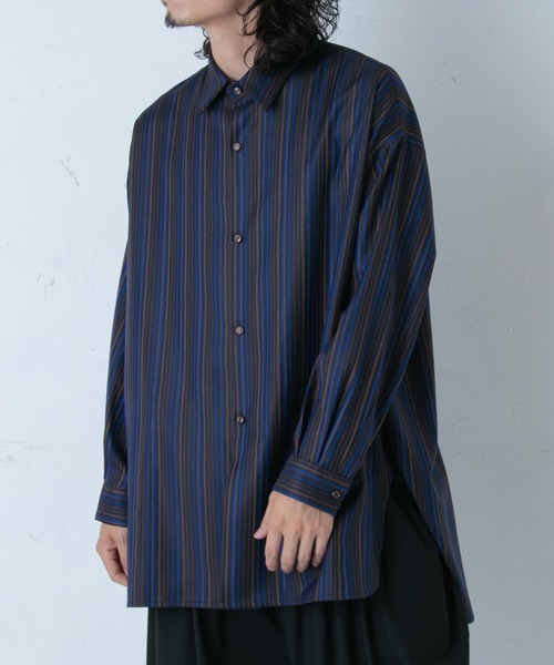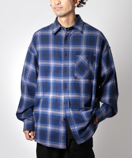 ドロップショルダーのデザインで、リラックス感漂う一着。春や秋には羽織りアイテムとして、冬にはインナーとして着用するのがおすすめです。長いシーズンで活躍できる青シャツとなっています。