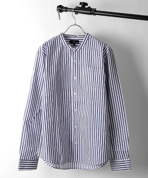 バンドカラーですっきりとしたデザインの青シャツ。コットン100%で作られているため、柔らかく、着心地の良い一着です。ストライプ柄以外にチェック柄やシンブルな青シャツもある、豊富なラインナップが魅力。