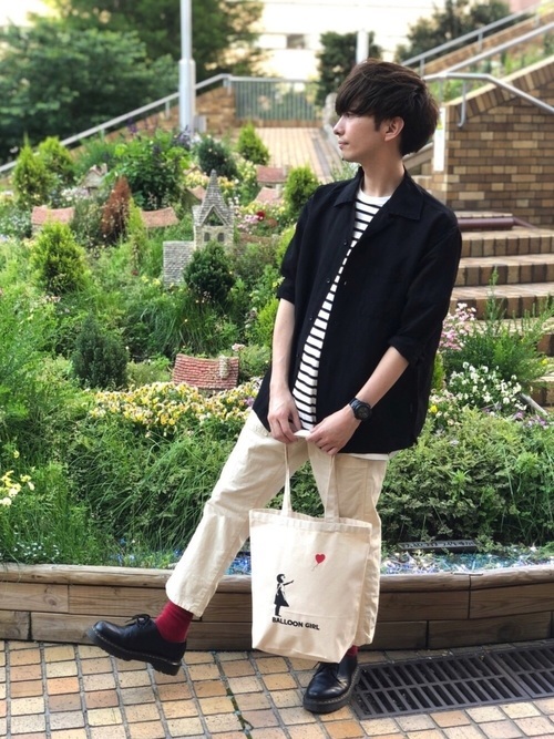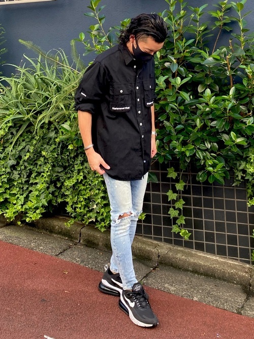 ・黒シャツ:SENSE OF PLACE by URBAN RESEARCH(¥5,390)
