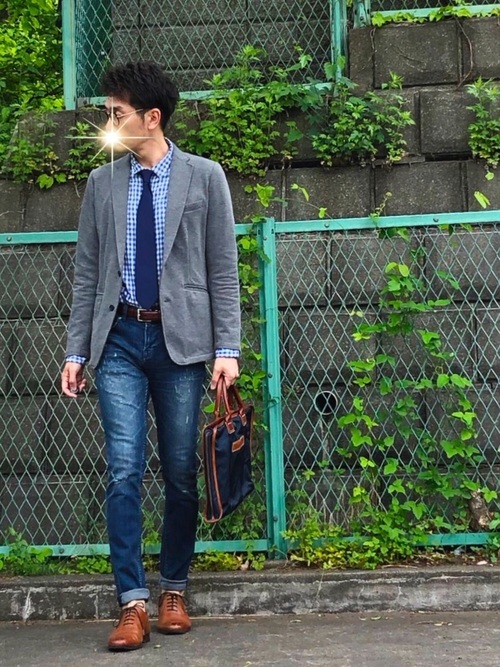 グレーのテーラードジャケットに合わせるアイテムとして、ブルーのインナーも間違いないアイテムです。ライトブルーならさわやかさを、ネイビーなら知的な印象をもたらしてくれます。カジュアルなデニムシャツやダンガリーシャツと合わせるのも、きれいめとカジュアルのバランスが取れてこなれた印象の着こなしになるのでおすすめです。