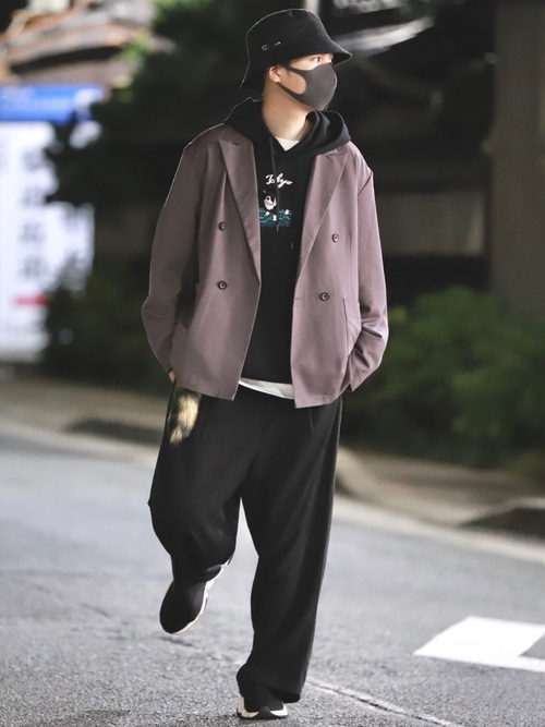 オーバーサイズのアイテムでまとめたストリートスタイル。ダブルジャケットを羽織ることで、こなれたスタイリッシュさが出ています。テール型のキーホルダーやパーカーの動物の刺繍が遊び心のあるアクセントに。大人余裕を感じるモードカジュアルに仕上がっています。