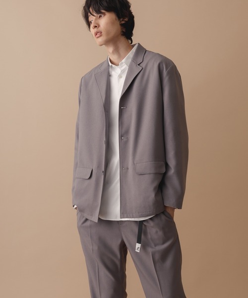 動物性繊維や石油系ドライクリーニングを必要としないエコなウールライク素材のシングルジャケット。素材の持つ上品さとシルエットがもたらすカジュアル感が共存し、汎用性の高いアイテムになっています。