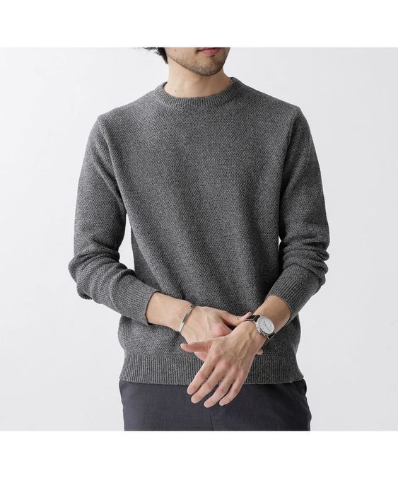 こちらもシンプルなクルーネックのセーター。ダボっとしすぎていないシルエットで、誰でも着こなしやすいのでおすすめ。メランジだと浮き立つような素材感の見た目になるので、シンプルコーデも映えやすくなります。同じく展開されているパープルもまた違った表情でおすすめです。