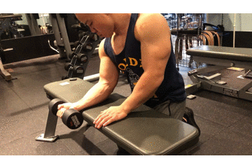 ダンベルリストカールのやり方は、先ほど紹介したバーベルリストカールのバーベルをダンベルに置き換えればOKです。ただ、ダンベルの場合は両手で行うとバランスが取れなく確実に手首に負荷をかけるのが難しいので片手で行いましょう。さらに、片手でもダンベルだと安定性が低いので足ではなくベンチなどに腕を置いて行うことをおすすめします。