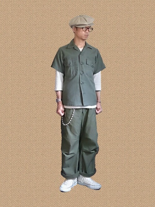 次に半袖のミリタリーシャツのコーディネートです。半袖だと夏でないと切れないイメージですが着こなしによってはそれ以外の季節にも使えます。秋口からの季節に半袖のミリタリーシャツを使ってコーディネートしようと思っている方は参考にしてみてください。