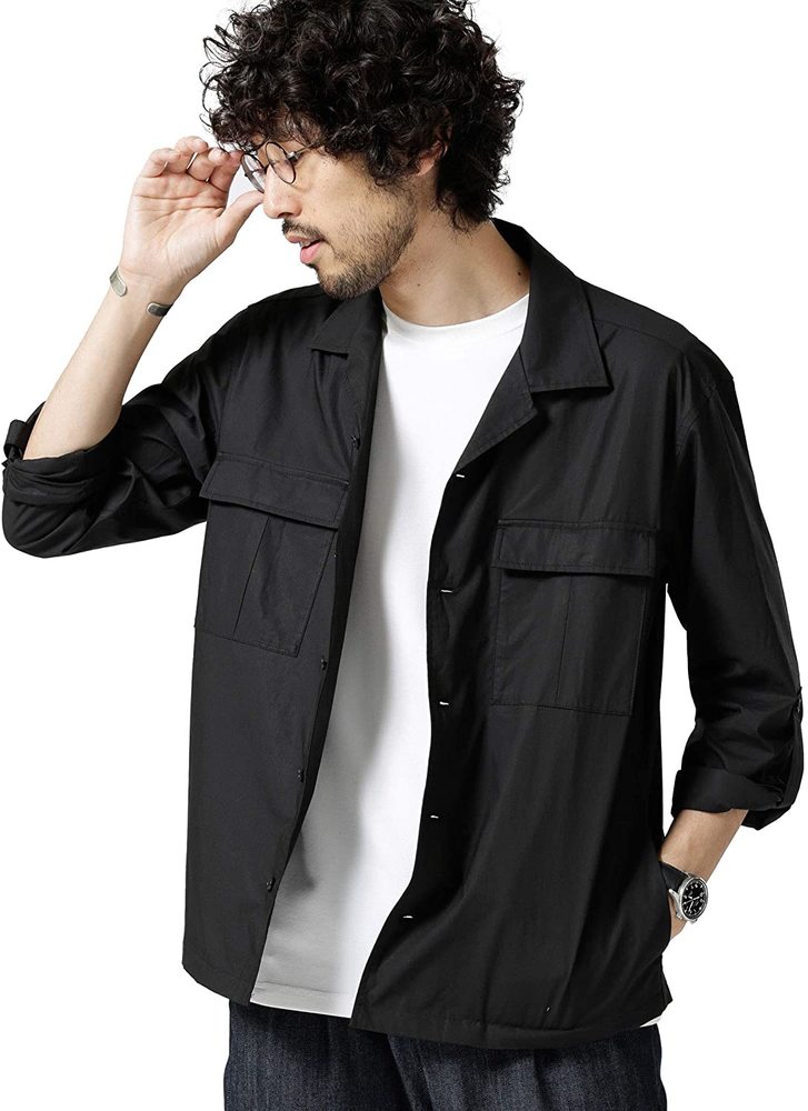ナノユニバースは、おしゃれなデザインを追求しているブランド。このオープンカラーのミリタリーシャツも、ワッペンなどついておらずシンプルなデザインになっています。大人なメンズを演出したいときにおすすめのミリタリーシャツです。スラックスなどど合わせると大人なキレイ目コーデになるでしょう。
