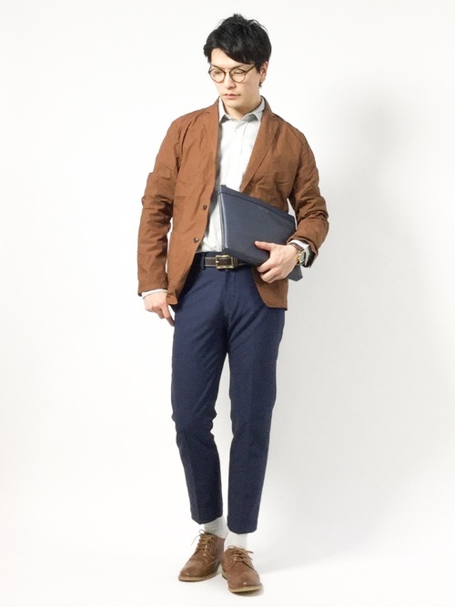 ブラウンのジャケットを使ったジャケパンスタイルはビジネスにも流用できる着こなしです。革靴とジャケットのカラーを合わせることで全身に統一感を生み出しています。20代はもちろん、30代から50代まで幅広い世代に似合う定番ともいえるメンズコーデです。
