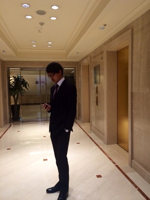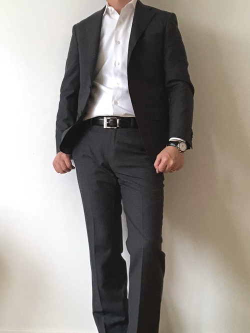 こちらはフォーマルシーンで着用しているコーデです。高級スーツに引けを取らないようにシャツも美しいシルエットで袖口がしっかりと腕の長さに馴染むものを着用しているのがポイントです。