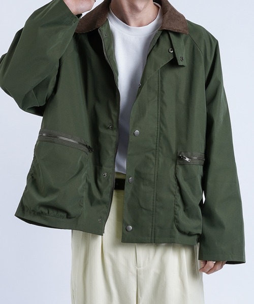 襟部分にコーデュロイ素材が使われたカーキブルゾンは、秋冬ムードを盛り上げてくれますよ。短すぎないショート丈なので、子供っぽく見える心配もありません。ワイドパンツとも相性抜群です。