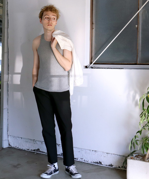 タンクトップ×ロングパンツ