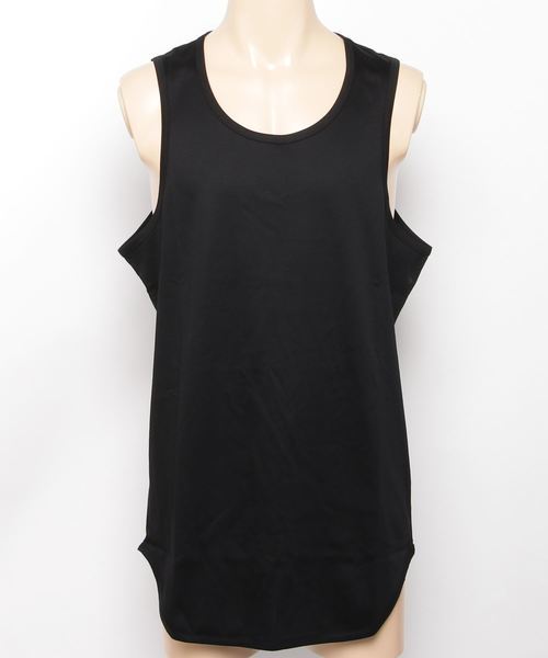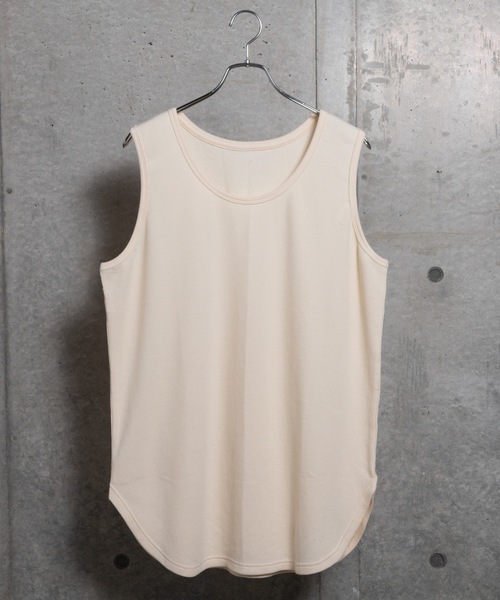 生地にポリエステルと綿を使ったタンクトップです。こちらのタンクトップも消臭機能が付いているので、汗や洗濯後の生乾きの匂いを気にせずに着用することができます。裾は丸みを帯びた形をしているので、レイヤードをして裾を見せることで抜け感のあるコーデに仕上がります。