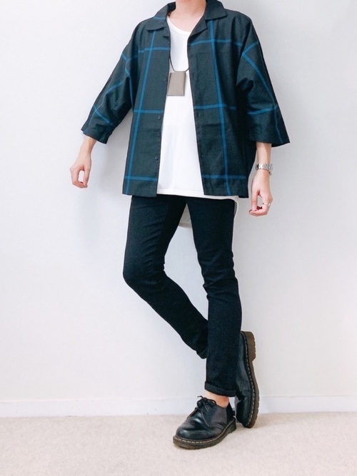 ドープスのタンクトップとチェックシャツを合わせたカジュアルコーデ。タンクトップは背中の裾が長く作られているので、バックスタイルもおしゃれに見えます。シャツの袖は半端丈を選ぶことでぬけ感のあるスタイルに。ボトムスや靴は黒で引き締め、スタイリッシュなコーデに仕上がっています。