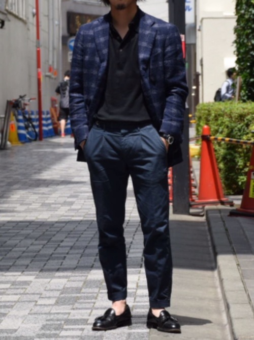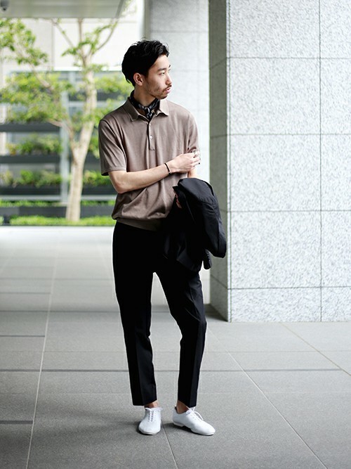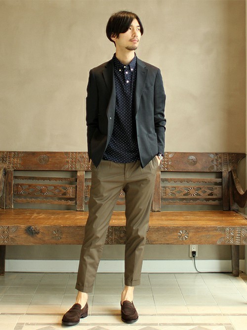 しかしジャケットの雰囲気を守るために、ローファーを履いてキレカジな印象に仕上げましょう。ポロシャツ×ジャケットに抵抗がある方も、気軽な着こなしが可能になります。