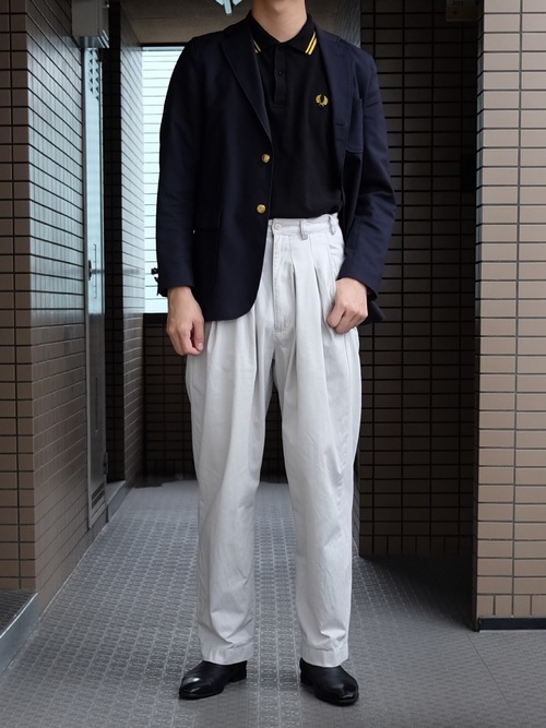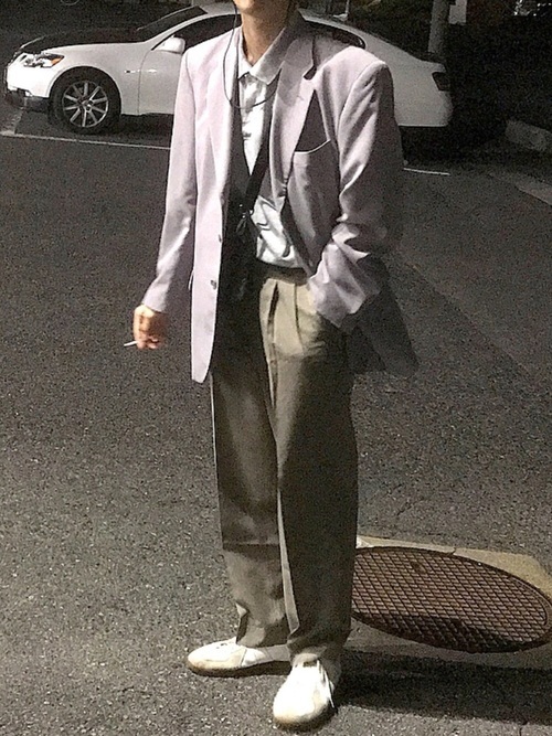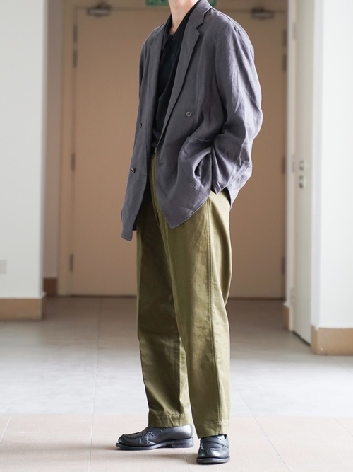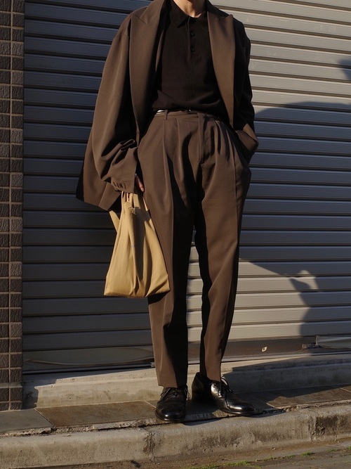 ポロシャツ×ジャケットコーデにワイドパンツはミスマッチのように感じますが、ストレートが効いたアイテムであれば問題ありません。特に裾に向けストンと落ちるデザインのワイドスラックスはおすすめです。Casper Johnのワイドスラックスパンツを用いて、オーバーサイズコーデも楽しんでください。
