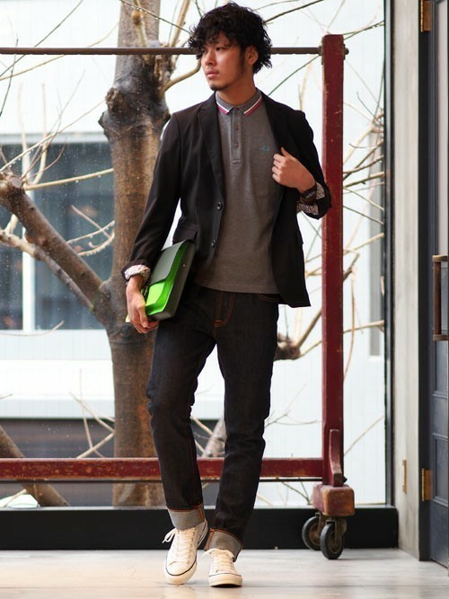 ポロシャツにネクタイを合わせ、ジャケットを上着として重ね着すれば、フォーマル感を覚えるメンズコーデが仕上がります。しかしデニムパンツを合わせるとその雰囲気は一変し、一瞬でカジュアルテイストに変化します。