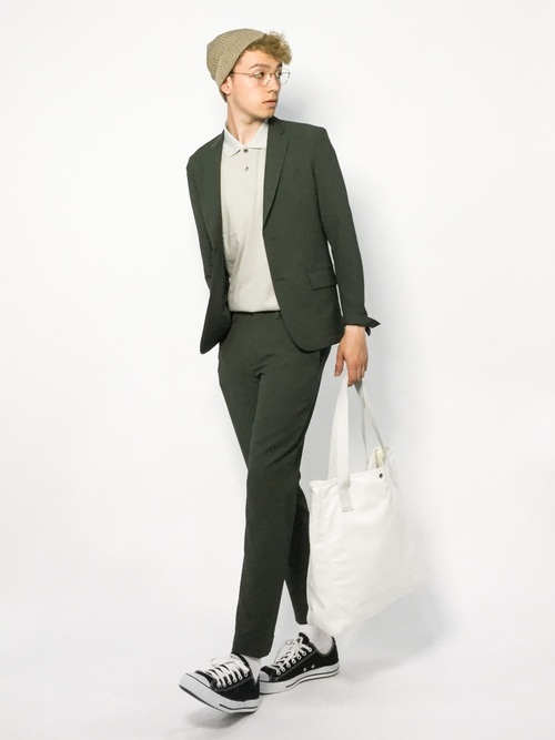 スマートなシルエットのSTUDIOUSのテーラードジャケットは、ポロシャツと合わせると、きれいめな雰囲気を漂わせるコーデを作り上げます。伸縮性も抜群なのでラフな着心地を楽しめるので、普段着にも取り入れやすいでしょう。