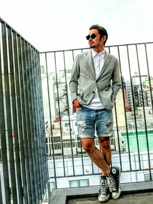 おもいっきりカジュアルスタイルに仕上げたい方は、デニムやジーンズをパンツに取り入れましょう。こちらのコーデのようにハーフパンツスタイルだと、よりカジュアル感は増します。スニーカーを合わせて、全体の雰囲気を統一させるとよりおしゃれなメンズコーデに仕上げられます。