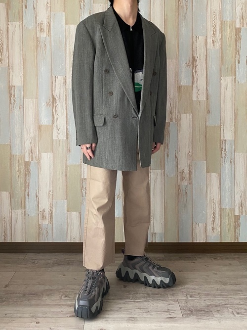 貫禄のあるダブルブレストと、上品なテーラードジャケットの組み合わせはビジネスシーンにもってこいのジャケットです。しかしZIP FIVEのジャケットのようにオーバーシルエットに作ることでカジュアル感をUP、リラックスした雰囲気で着こなしが可能になりました。
