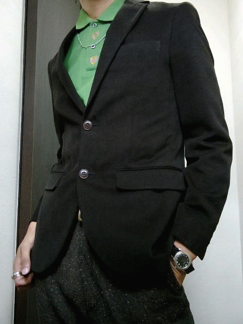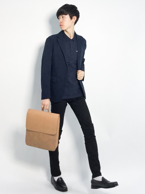 『黒』ポロシャツ×ジャケットのメンズコーデ集