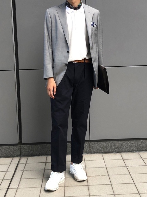 『白』ポロシャツ×ジャケットのメンズコーデ集