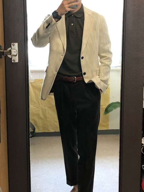 上品で大人なポロシャツ×ジャケットコーデをマスター使用