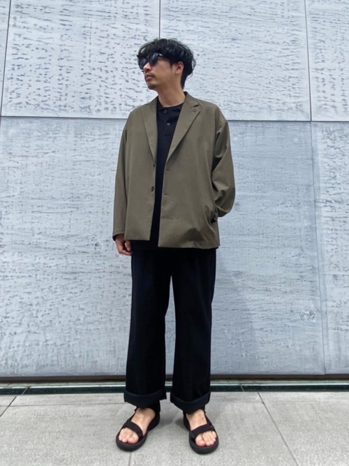 サンダルを合わせて完全ラフスタイルに切り替えれば、ワイドパンツもポロシャツ×ジャケットコーデに馴染みます。全体の雰囲気を見ながら、挑戦したアイテムも取り入れてみてください。