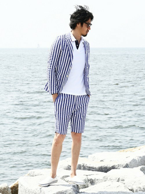 ストライプ柄はシャープでスタイリッシュな印象を与えます。ビジネスシーンにもマッチする柄ですが、こちらのコーデのようにハーフパンツを合わせると、一気に爽やかな雰囲気を演出させます。合わせて白色のポロシャツを着こなすと、春や初夏にマッチするコーデの完成です。ポロシャツの襟もとにデザイン性があるものを選ぶと、おしゃれ度もUPします。