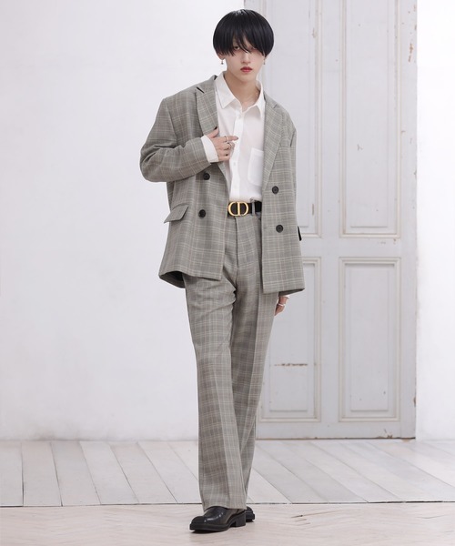 オーバーシルエットだけど野暮ったさを感じさせないG.O.Cのダブルテーラードジャケット。特にチェック柄のジャケットはアクセントにもなりおすすめです。カジュアルな印象を与えるチャック柄と、きれいめなジャケットの組み合わせはキレカジコーデにもってこいです。ポロシャツとも馴染み一気におしゃれなメンズコーデを作り上げます。