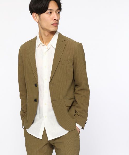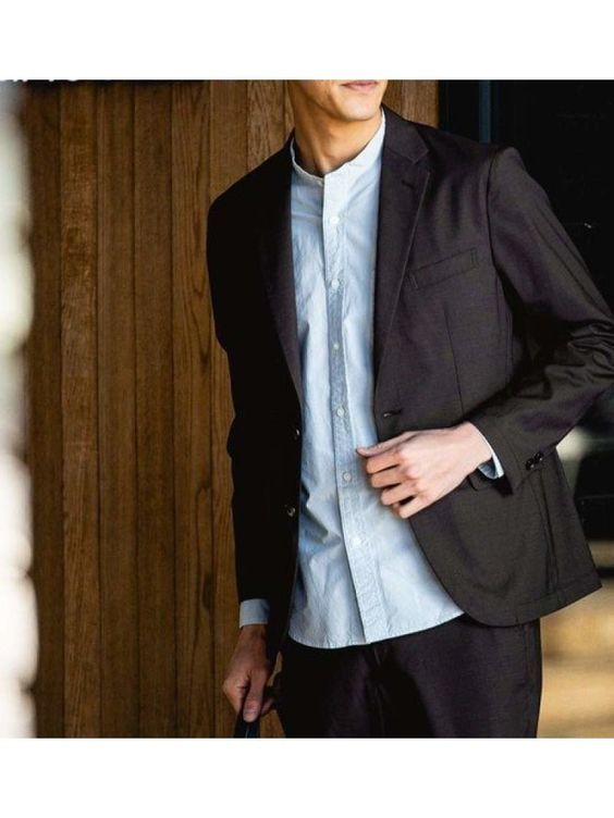 シャツとジャケットの相性の良さは春夏秋冬季節を問いません。こちらはスタンドカラーのシャツをインナーにあwせています。程よくカジュアルでトレンド感のある着こなしはさわやかな印象を与えます。