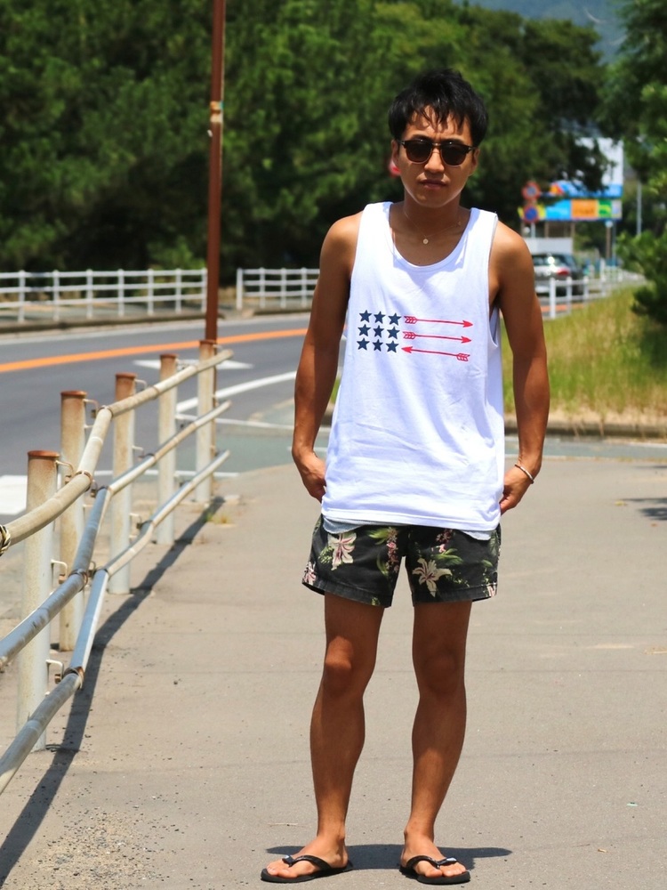タンクトップ×ボードショーツ