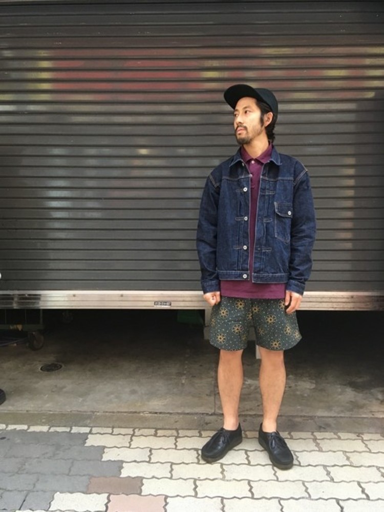 こちらは肌寒くなってきた夏の終わりにもオススメのジージャンと合わせたボードショーツコーデ。夏の終わりのアクティビティにオススメのスタイルです。ボードショーツは動きやすく、オシャレに着こなす事ができるのでお出かけにはぴったりですね。ダークカラーで統一する事で大人コーデになっています。