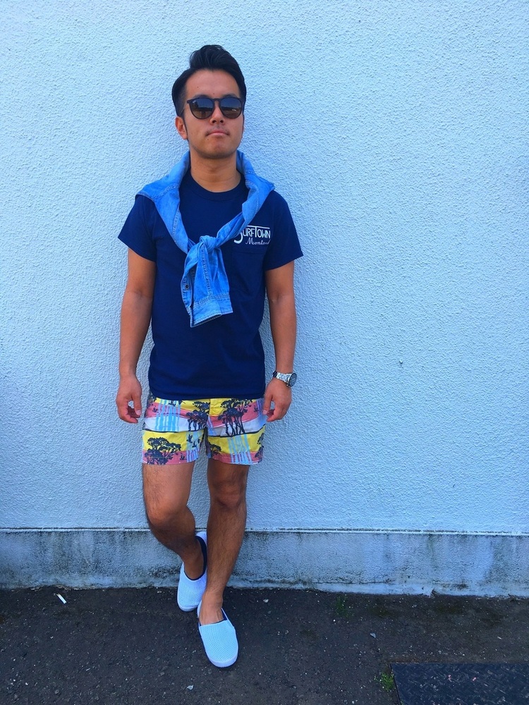 水陸両用ボードショーツを着こなした街着メンズコーデ集