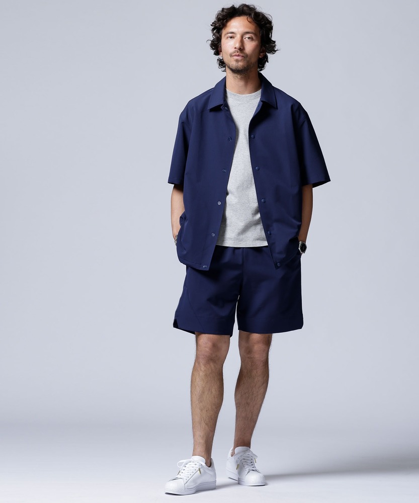 若者からの支持が強くコンテンポラリーやエッジの効いたアイテムに定評があるnano・univers。こちらで紹介するナイロンショーツは速乾性や接触冷感など、夏に嬉しいキーワードを詰め込んだ機能素材を搭載しています。シワにもなりにくく、お家で簡単にケアーできるのも魅力的。程よくリラックスしたシルエットで、裾に入ったスリットもポイントです。