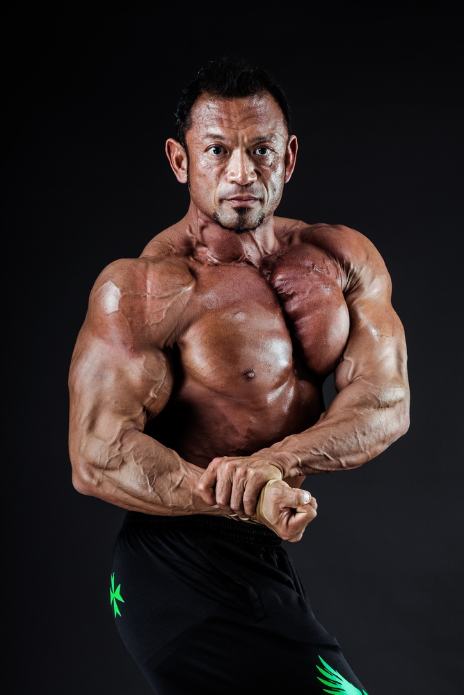 ボディビルダーはボディビル競技で肉体美を見せつけ合うための筋肉、いわゆる見せ筋を鍛え上げています。筋肉を大きく見せるために、瞬発力は高いが持久力の低い速筋(白筋)を主に鍛えて筋肉量を筋肥大させる。これによりムキムキの筋肉を作りあげています。