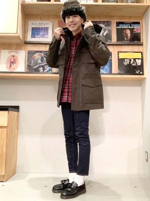 M-65にチェックシャツ、デニムパンツを合わせる定番のアメカジスタイル。男らしさのあるコーデですが、キャップやローファーで遊び心をプラスしています。