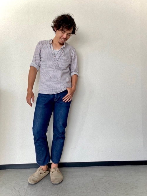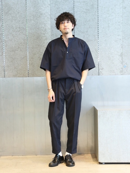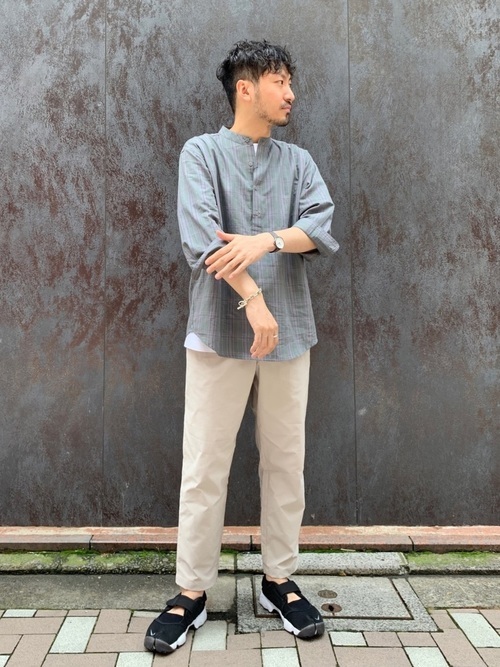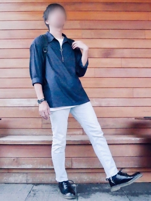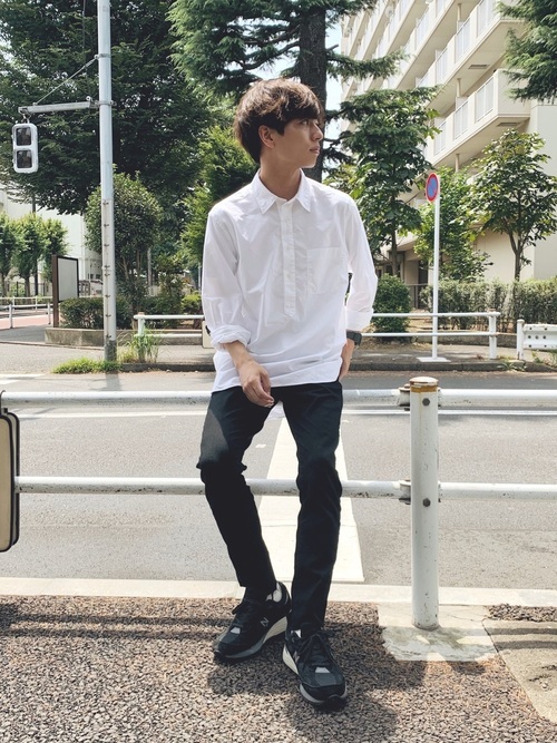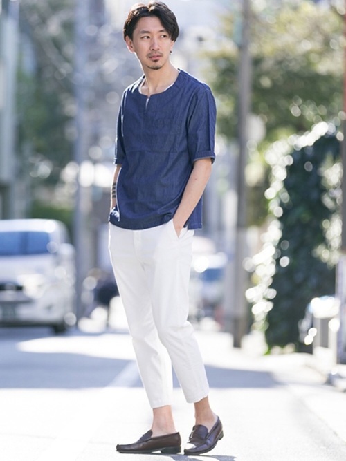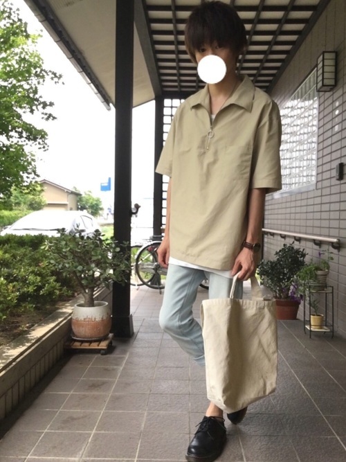 プルオーバーシャツを着こなしたメンズコーデ。まずは、春夏の着こなしを見ていきましょう。