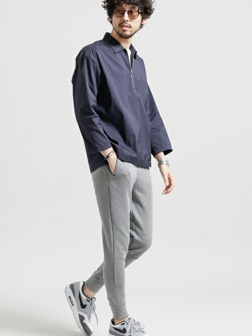 プルオーバーシャツは、ゆるい印象のアイテムです。そのため、合わせるアイテムもゆるいものを選んでしまうと、ダラッとした着こなしになってしまう可能性があるのでNG。