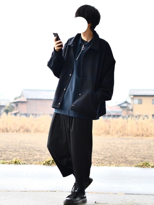 プルオーバーシャツにワイドシルエットのテーパードパンツ、羽織ものにはビッグシルエットのジャケットを組み合わせて、ゆったりとした印象の着こなしに仕上げています。足元はドレスシューズを合わせて、大人の品をプラス。