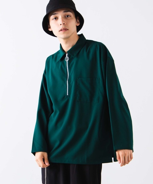 ハリのある光沢感と、ビッグシルエットで大人メンズに似合うプルオーバーシャツです。カラーの種類が豊富で、襟部分だけカラーの切り替えしがあったりと、遊び心のあるデザインが魅力。スキニーやスラックスなど、スマートなパンツとの相性が良いアイテムです。