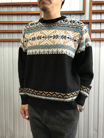 コットンとポリエステル素材の3シーズン使えるノルディック柄セーターです。全体柄が特徴的でカジュアルコーデに着まわしのしやすいアイテムです。