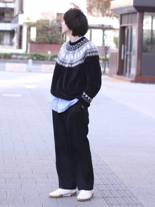 ノルディックセーター/ニット×ウールポンチトラックパンツ