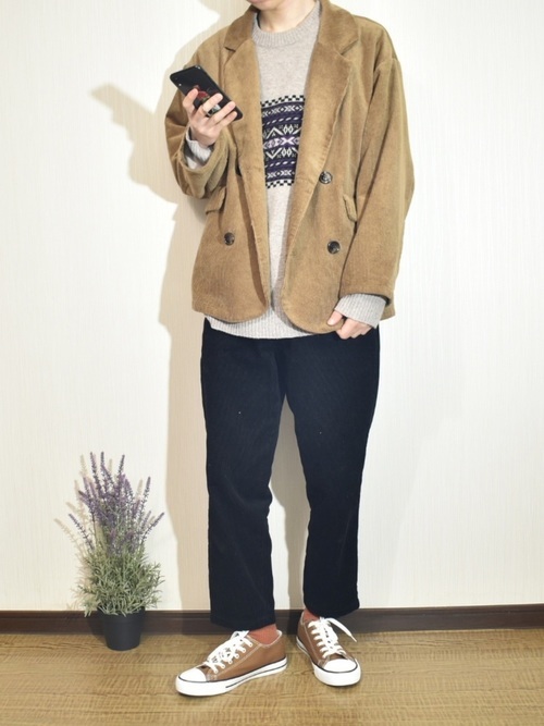 コーデュロイパンツ×ノルディックセーター/ニットで温もりコーデ