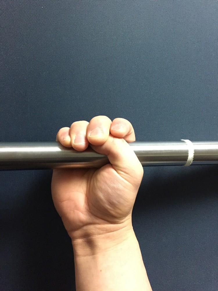 サムアラウンドグリップは棒に対して親指とその他の指で挟みこむ握り方となっています。握力を使ってのトレーニングが可能となり、高重量のバーベルやダンベルを使った筋トレがしやすくなるというメリットがあります。