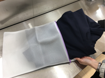 おしゃれ着洗い用の中性洗剤は、ウールやカシミアなどのデリケートな衣類を洗うために開発された商品です。洗濯することによって衣類が縮むのを防ぐ効果があります。また、洗濯ネットは必須です。洗濯ネットを使わずに洗濯機で洗うと、スーツの形が崩れ、シワがつきやすくなります。セーターなど大きな衣類を入れることができる大判サイズを選びましょう。
