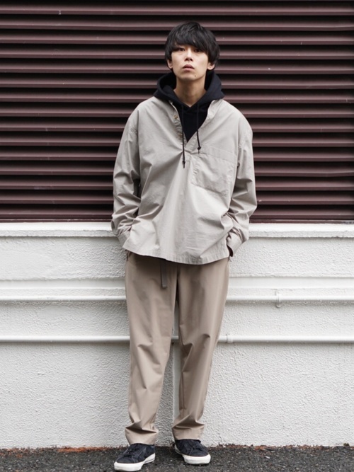 ナイロンパンツはビッグシルエットのロングシャツとも相性良く着こなしできます。スポーツ感が強い素材のナイロンパンツは野暮ったさのあるロングシャツと組み合わせることで、相互関係が働き柔らかい雰囲気を演出してくれます。