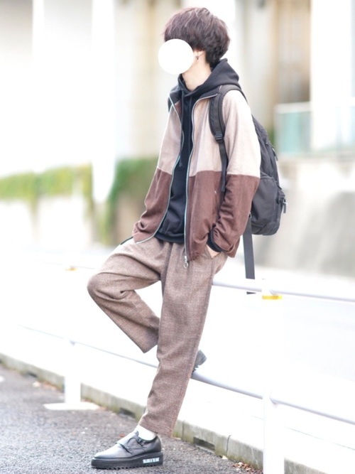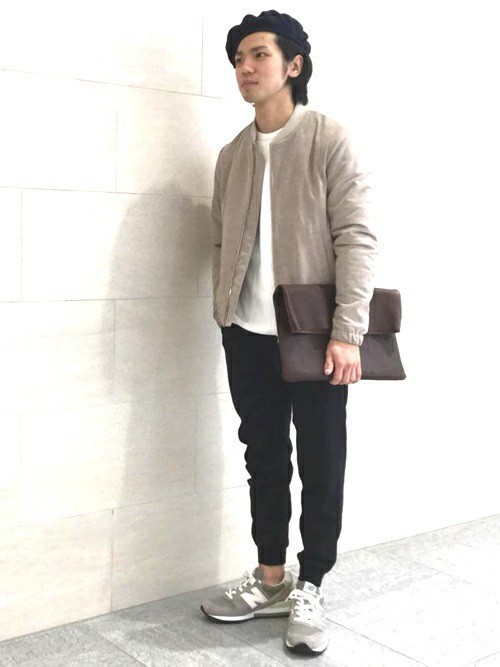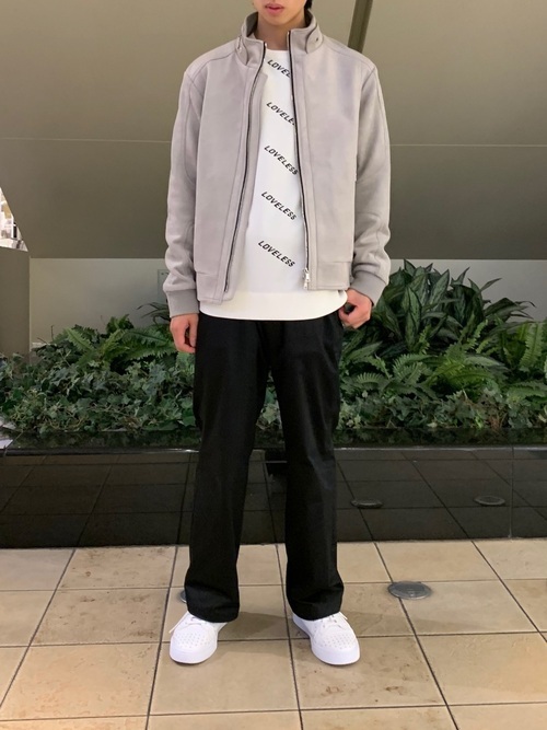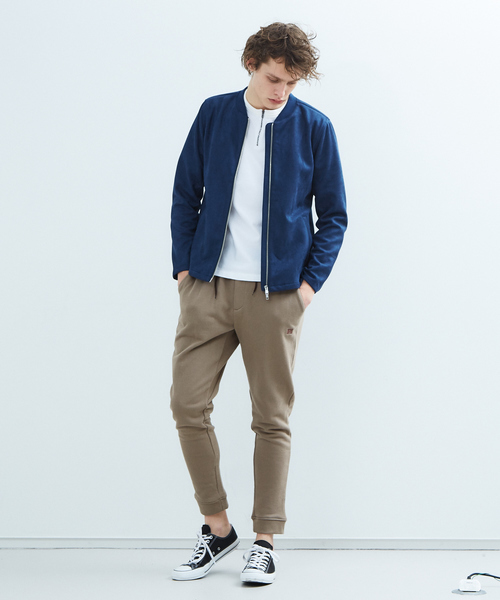 スエード素材のトラックジャケットは、カジュアルコーデにぴったりですね。ナイロン素材にはない柔らかい起毛感がコーディネートのアクセントになりますよ。