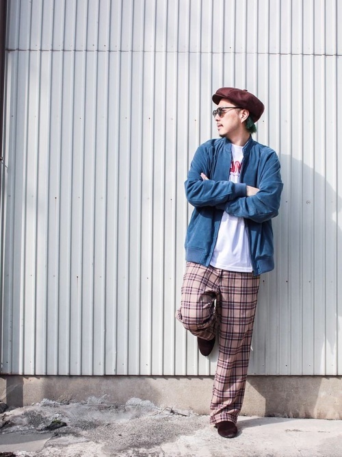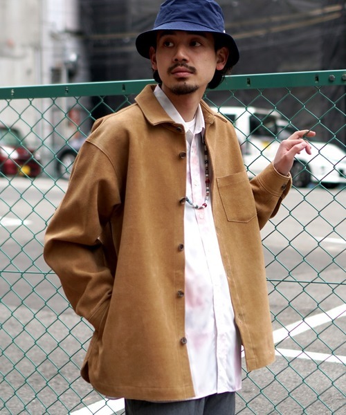 ビッグシルエットのスエードジャケットにバケットハットを合わせることで、ストリートテイストなメンズコーデに。インナーのシャツは無地ではなく、タイダイ柄を選ぶのがポイントです。シンプルながら、遊び心のあるコーデに仕上がっています。