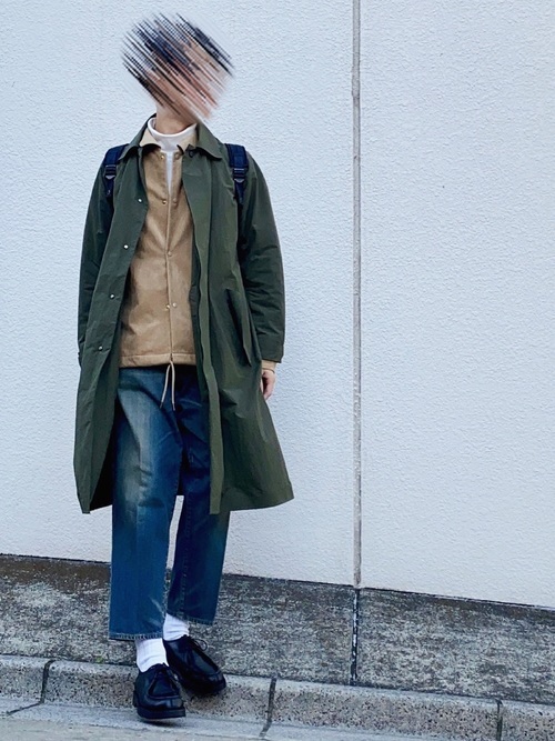 スエードジャケットだけだと寒い日は、ステンカラーコートを上に羽織りましょう。コートの下からチラっと見えるスエード素材が、新鮮なアクセントをプラスしてくれます。